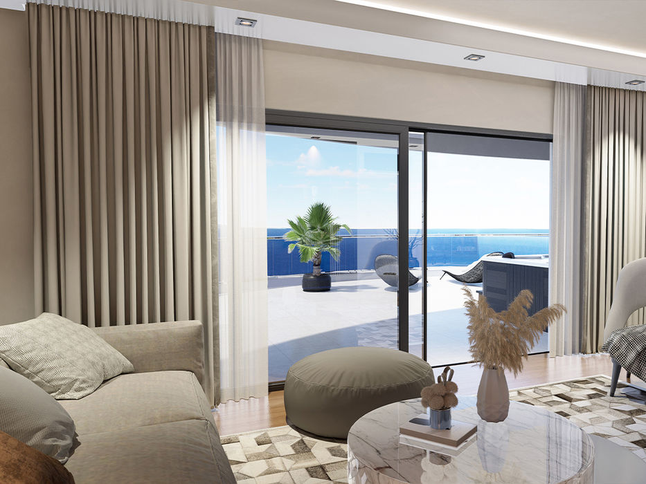 Distinctive features such as the ancient desire of mankind to rise and reach the sky, the columns of the world-famous Salamis ruins, and the bastions built by the Lusignans stand out as the main elements of OCEAN LIFE's architecture. The majestic traces of history meet modern lines and are integrated into the most special life of the island. A vast blue blending seamlessly into nature. The project, which has a minimalist aesthetic with its perfect relationship with nature, consists of 21 residences, social areas, walking paths and landscaping areas, each with a unique view and spirit.